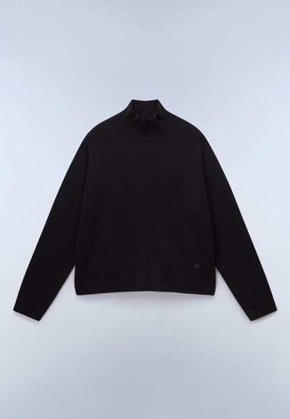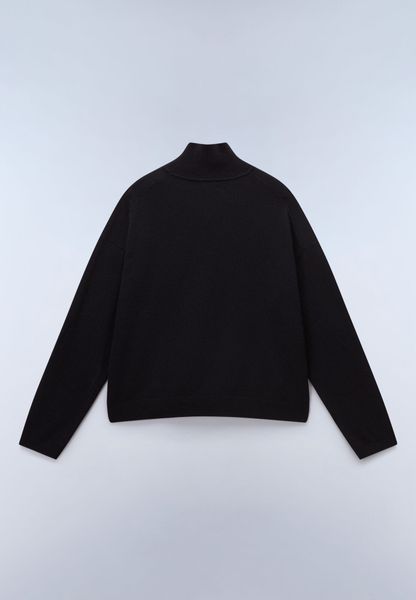 "The D-mis T W turtleneck sweater from Napapijri combines traditional outdoor heritage with modern design and offers flawless urban style. The shortened silhouette is enhanced by subtle embroidered details and is made from a high-quality wool blend consisting of 80% wool, 40% of which is recycled, and 20% polyamide. This combination of materials not only ensures exceptional warmth, but also impressive durability and wear resistance."