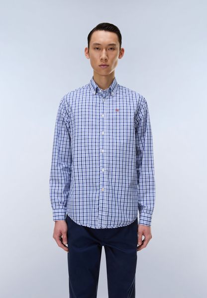 "Stylish men's cotton shirt with button-down collar and Norwegian flag for an elegant look."