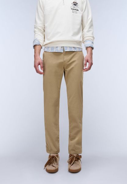 "The M-puyo SUM by Napapijri is the perfect choice for men who value style and comfort. These chinos are made of high-quality cotton with a small amount of elastane, which makes them particularly stretchy and comfortable to wear. The regular fit ensures a classic fit that is perfect for both everyday wear and special occasions. The trousers are made in Bangladesh and stand out thanks to their contrasting look, which gives them a unique look."
