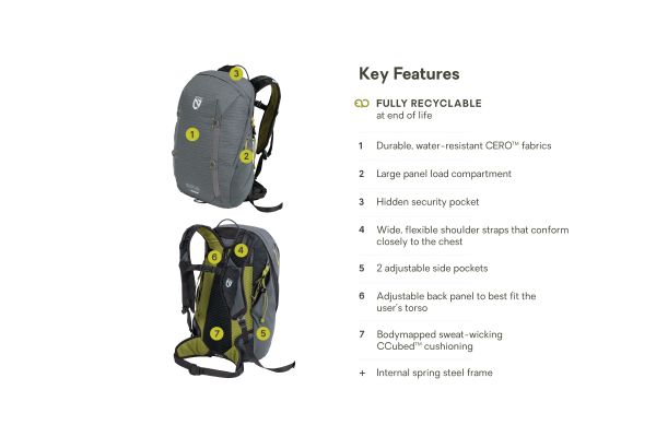 "" """Another ""plus ""point ""is ""the ""sustainable ""concept ""of ""the ""Endless ""Promiseu00ae ""collection ""from ""NEMO, ""which ""is ""fully ""recyclable ""and ""therefore ""protects ""the ""environment. ""Whether ""for ""a ""long ""hike ""or ""a ""challenging ""climbing ""tour, ""the ""Resolve ""25L ""adapts ""to ""your ""needs ""and ""ensures ""that ""you ""can ""concentrate ""fully ""on ""your ""adventure."