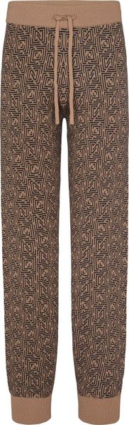 "The Narrows Pants from Nikkie combine style and comfort in a unique garment. These soft knitted pants feature an eye-catching logo pattern that adds a touch of sophistication to any outfit. The elasticated waistband with a drawstring not only ensures a perfect fit, but also makes them easy to put on and take off. The ribbed cuffs give the trousers a sporty touch and underline the relaxed fit"