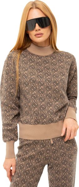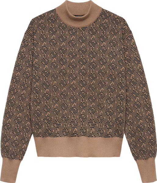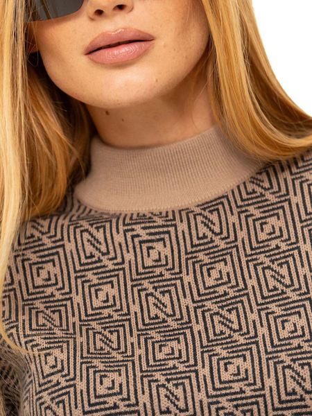"Elegant knitted sweater with a logo pattern, turtleneck and ribbed cuffs for stylish and warm outfits."