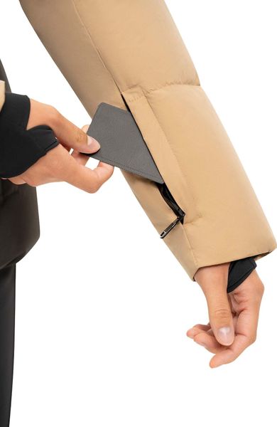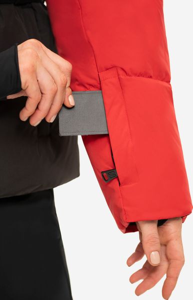 "For maximum comfort and protection, the jacket has a snow guard at the hem and cuffs to prevent snow from penetrating. The adjustable hood offers additional protection from wind and weather. Practical details such as the inside pocket and the special ski ticket pockets ensure that you always have your most important items to hand"