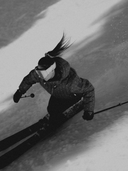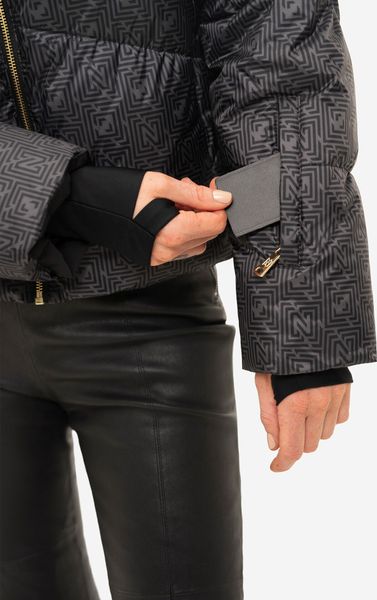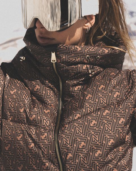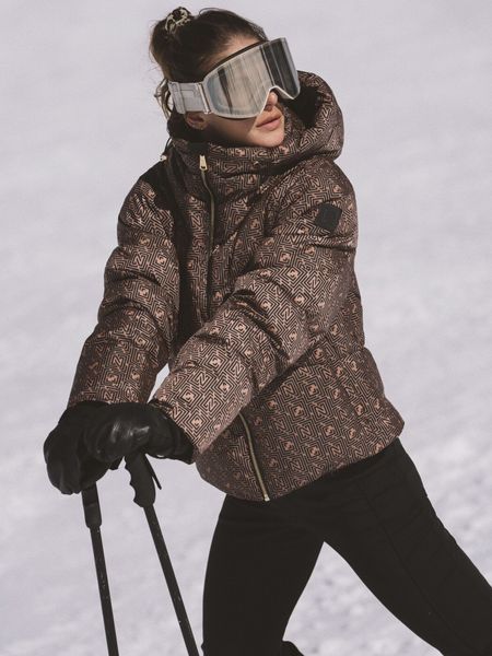 "Fashionable jacket with waterproof zips, snow channels and practical pockets for outdoor activities."