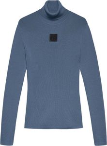 "Elegant turtleneck sweater with a slim fit and subtle logo for stylish looks."