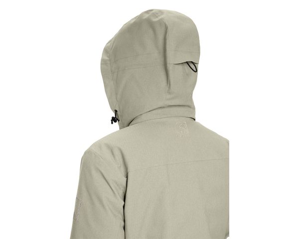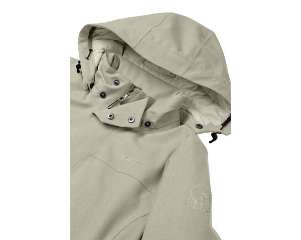 "The clean Nordic aesthetic of the Tanacoat is accentuated by fully taped seams, an elegant zipper cover and knitted ribbed cuffs. Made from 100% recycled polyester, the coat stands out with its unique herringbone fabric and tailored fit, giving you a refined look. The detachable hood with visor and adjustable hem allow you to adapt to changing weather conditions"