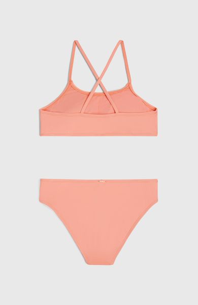 "The Essentials Bralette Bikini Set from O'Neill is the perfect choice for carefree days by the sea or water sports. This set combines comfort with style and is ideal for girls who prefer a slightly more covered option. The super comfortable bralette top offers firm support with sturdy straps and features removable pads from size 140 to ensure individual comfort. This is complemented by the well-covering back, which offers both freedom of movement and a secure fit."