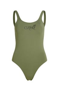 "The Essentials O'Neill Script swimsuit is the perfect companion for carefree days at the beach or in the pool. With its elegant, open back and round neckline, it combines stylish simplicity with functional design. The clear lettering on the chest gives the swimsuit a modern touch, while the moderate coverage of the bottom and the removable pads in the cups ensure optimum support and comfort. Whether for swimming or water sports, this swimsuit from O'Neill offers the ideal combination of style and functionality. The minimalist design makes it a versatile companion that cuts a fine figure both in the water and on land"