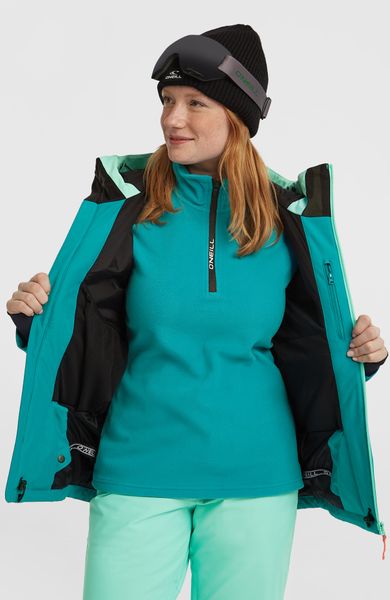 "The Fwc'cruz Triple Snow Jacket from O'Neill combines performance and style for those who want to cut a fine figure on the slopes. This women's ski jacket is perfect for skiing and snowboarding thanks to its water resistance of 10,000 mm and breathability of 10,000 g. The PFC-free, permanently water-repellent finish provides all-round protection from the elements. Featuring O'Neill's innovative V-Design technology, it offers an intelligent temperature-regulating body-mapping system that provides dynamic warmth without bulk thanks to PrimaLoftu00ae Active Evolve-insertsu00e4tze."