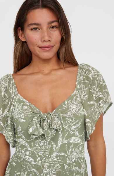 "The Kesia jumpsuit from O'Neill is the perfect companion for sunny days, whether on the beach, during water sports activities or in your free time. Made from 100% viscose, it is not only comfortable to wear but also environmentally friendly. Thanks to a special softening treatment, the fabric feels particularly smooth and flatters the figure. The jumpsuit features a high waistband and wide legs, making it particularly fashionable and comfortable. The square neckline and smocked back add an elegant touch, while the integrated elasticated shoulder straps ensure maximum comfort. The design is rounded off with a stylish bow in the middle, which gives the jumpsuit that certain something. Whether you're swimming or strolling around town, the Kesia jumpsuit is a must-have for the warm season."