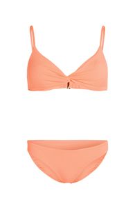 "The Malibu Matira bikini set from O'Neill is the perfect choice for anyone who wants to start the swimming season in style and comfort. This set impresses with its timeless bralette shape, which is complemented by a subtly wrapped front section, adding a touch of elegance and sophistication. The cheeky cut bottom with a low waistband creates a modern look, while the top offers medium support and moderate coverage."