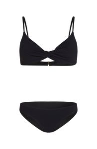 "The Malibu Matira bikini set from O'Neill is the perfect choice for anyone who wants to start the swimming season in style and comfort. This set impresses with its timeless bralette shape, which is complemented by a subtly wrapped front section, adding a touch of elegance and sophistication. The cheeky cut bottom with a low waistband creates a modern look, while the top offers medium support and moderate coverage."