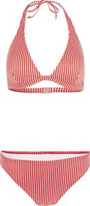 The Marga - Cruz Halter Bikini Set has a fixed halter with a tie neck strap and clasp close back, combining with medium coverage, classic brief shape bottoms and coming in a universally stripe design. Removable padding at the bust and available up to a D cup. Made from 79% REPREVE® recycled polyester and 21% elastane blend as part of our O'Neill Blue product range. Please refer to Our Ocean Mission page for more information about the materials used in O'Neill Blue products.