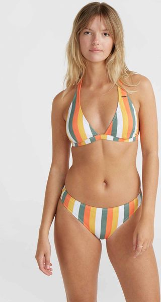 Clean lines and a slim silhouette make the Marga Rita bikini set made from partially recycled materials the ideal choice for your summer adventures. Whether you want to hit the waves or explore the beach, this bikini set has you covered. The flattering halterneck top offers medium support and moderate coverage for all your activities. It features adjustable straps, an easy-to-use back closure and removable pads to ensure a perfect fit. This top is accompanied by a panty with a mid-rise waistband and full coverage of the bottom. This set is available up to cup size D.