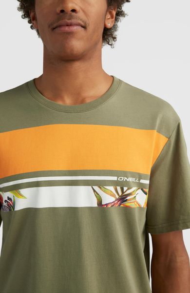 A digital print covers the chest of the medium weight Mykhe T-Shirt. Round, ribbed neckline, regular fit and forwarded shoulder seams for ultimate fit. Add this one to your wardrobe and watch it become a favourite. Part of O'Neill Blue, please refer to Our Ocean Mission page for more information about the materials used in O'Neill Blue products.