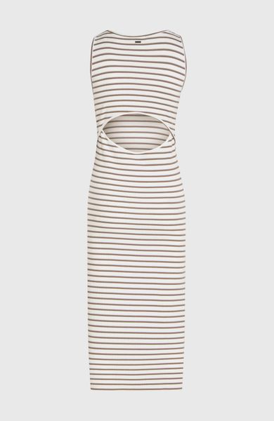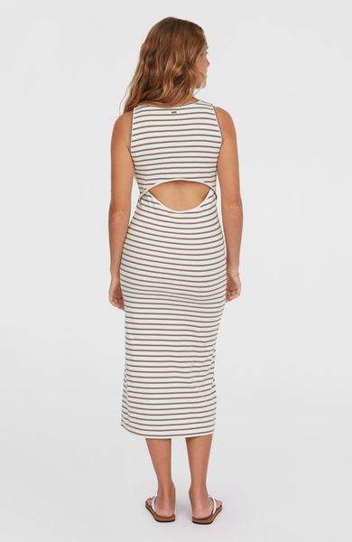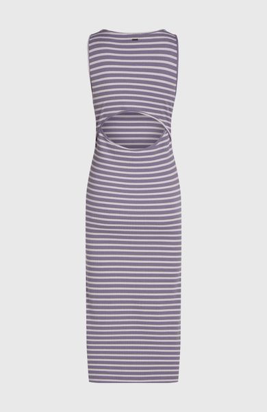 "Fashionable midi ribbed dress with an elegant back neckline for stylish looks for leisure activities and everyday wear."