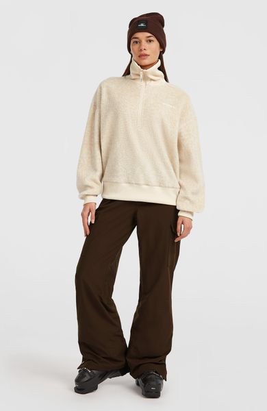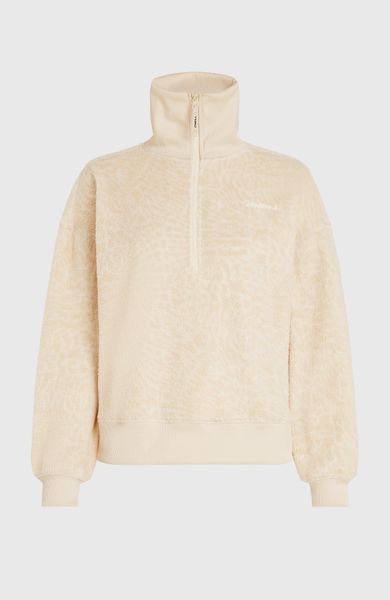 "The Must-Have Half Zip Fleece from O'Neill is the ideal companion for relaxed leisure- and everyday moments. This top has been specially developed for women who value style and functionality. Made from 100% recycled polyester, this fleece sweater not only offers an environmentally friendly option, but also a high level of breathability and comfort. The loose fit ensures a comfortable feel, while the high collar with half-zip fastening and elasticated cuffs and hem provide additional warmth and protection."