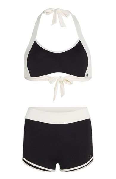 "The O'Riginals Vintage bikini set from O'Neill is the perfect choice for those who don't want to compromise on style when swimming and water sports. With a timeless silhouette and clean finish, this set is inspired by the best styles of decades past. The top offers moderate coverage and medium support, supported by side boning. The removable pads and adjustable straps allow for an individual fit and optimum comfort. The matching trousers provide full coverage of the bottom, which ensures a secure feeling both when swimming and sunbathing."