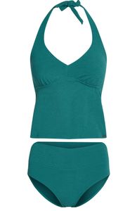 "The accompanying lower part is cut high and also offers full coverage. The turn-up waistband makes it possible to adjust the fit as desired and provides additional comfort. Thanks to the high-quality materials and sophisticated workmanship, the tankiniset is not only functional, but also a fashionable eye-catcher. Whether you're at the beach or in the pool, you'll always be perfectly dressed with this set"