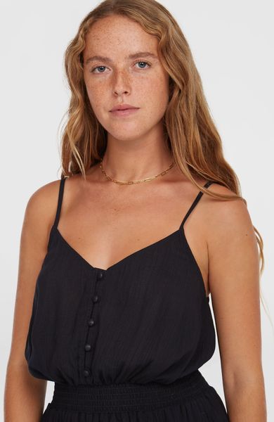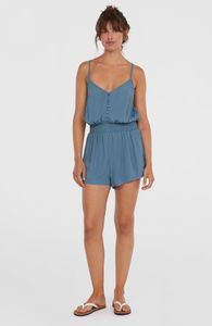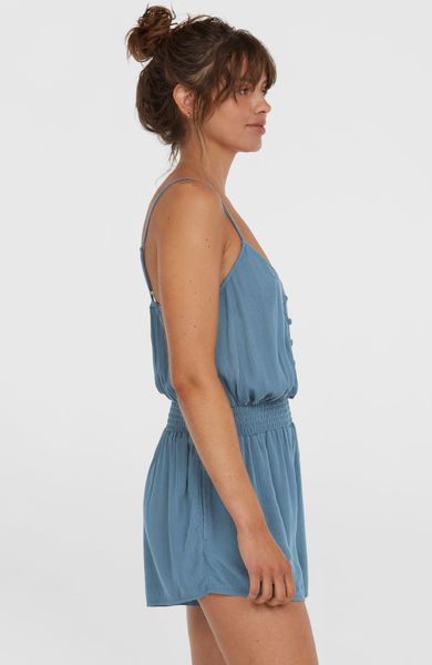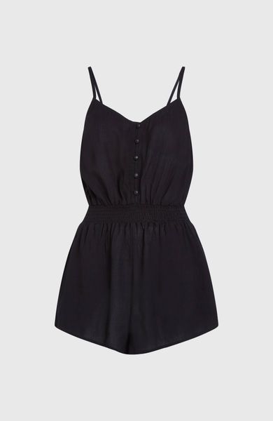 "This fashionable romper from O'Neill is the perfect garment for warm summer days. With its narrow straps and button placket, it adds a stylish touch to any casual or everyday look. The high waist and smocked waistband with an integrated elasticated band at the back ensure a flattering fit, while the practical pockets in the side seams provide additional comfort."