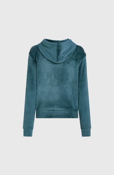 Cosy women's hoodie made from recycled velour fabric with a double-layer hood and trendy design for all year round.