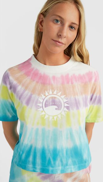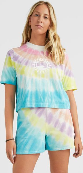 Accelerate your movement with this cotton tee. The loose fit and cropped construction Women Of The Wave Cropped T-Shirt offers you comfort and freedom of motion. Comes in block colour or tie-dyed style print options and a water-based print. Made as part of our O'Neill Blue product range. Please refer to Our Ocean Mission page for more information about the materials used in O'Neill Blue products.
