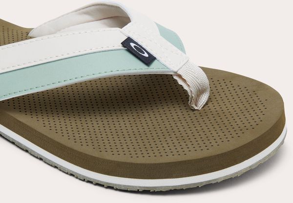"The Oakley Ellipse logo on the strap and footbed emphasizes the fashionable appeal and makes a strong brand statement. The rubber outsole provides added comfort and durability, while the Oakley Ellipse logo repeat pattern on the outsole makes a stylish impression with every step. Whether you're walking on the beach or spending a relaxing day in the city, the Burke flip flop is the ideal choice for a casual and comfortable experience."