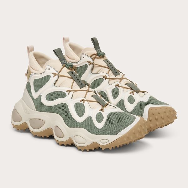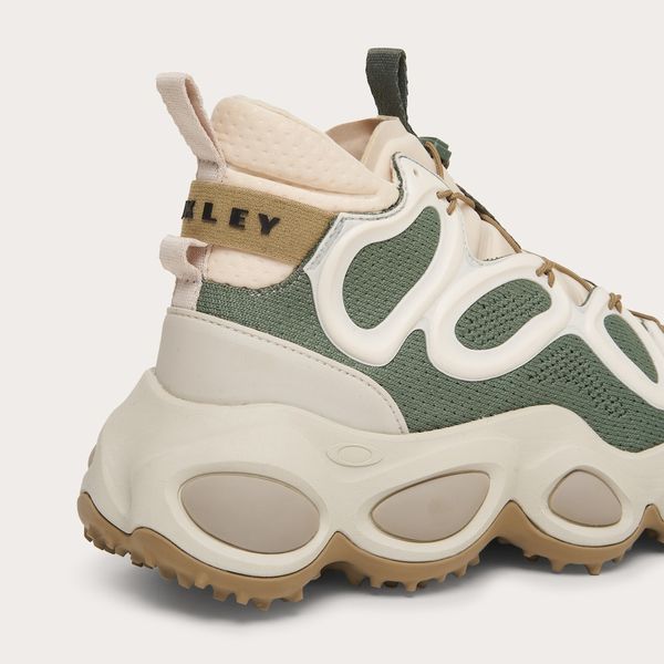 "The double-layered, asymmetrical TPUtoe cap not only gives the shoe visual depth, but also reinforces the structure at key points. With the curved Oakley Bark logo on the heel strap and tongue band, the EON Alpha is a symbol of Oakley's vision in footwear fashion for the next 50 years. This shoe is not only a fashion statement, but also a reliable companion for anyone who values comfort and style in equal measure."