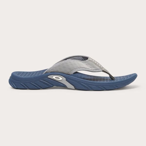 "The Operative flip flops from Oakley offer outstanding cushioning and support for the foot thanks to their double-density EVA sole, ideal for leisure and everyday wear. The breathable and waterproof Lycrastrap adapts flexibly to a wide variety of foot shapes, ensuring individual comfort. The robust PUrubberuuuf sole offers excellent grip, while the specially designed grooves on the outsole efficiently drain water away from the pressure zones to improve grip on wet surfaces"