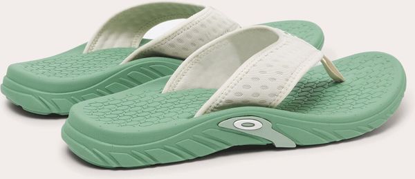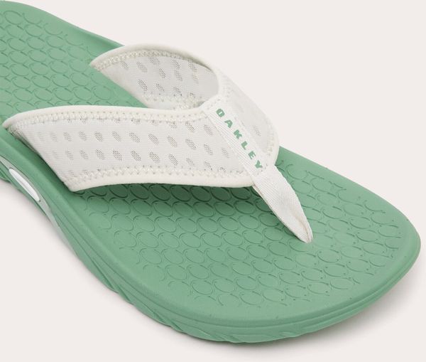 "The Operative flip flops from Oakley offer outstanding cushioning and support for the foot thanks to their double-density EVA sole, ideal for leisure and everyday wear. The breathable and waterproof Lycrastrap adapts flexibly to a wide variety of foot shapes, ensuring individual comfort. The robust PUrubberuuuf sole offers excellent grip, while the specially designed grooves on the outsole efficiently drain water away from the pressure zones to improve grip on wet surfaces"