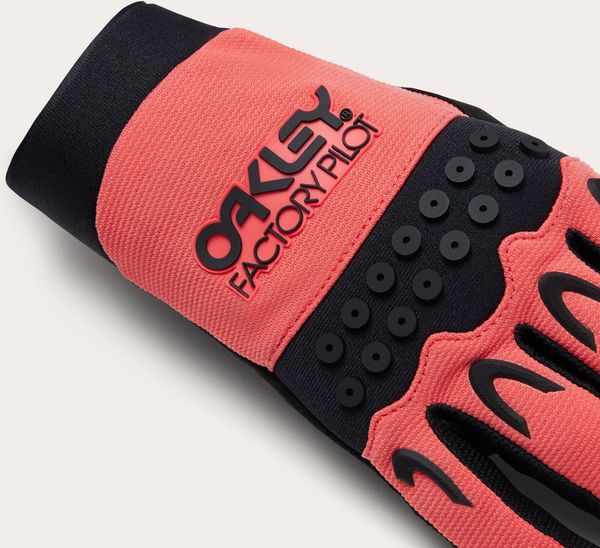 "Discover the ultimate companion for your mountain bikingadventures: The Switchback MTBglove 2.0 from Oakley offers you optimal protection and comfort, whether you're riding uphill or downhill. This glove has been specially developed for cyclists and mountain bikers and combines innovative materials with sophisticated design. The knuckles are reinforced with neoprene, while welded materials on the fingertips provide additional durability. The palm features a suede insert that provides lightweight, strategically placed padding to cushion shocks and improve grip."