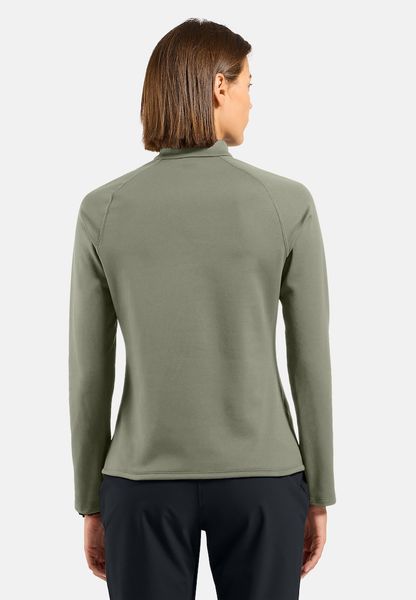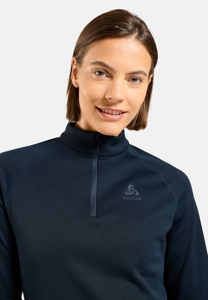 "The ODLO Besso midlayer with half-length zipper is the ideal companion for long and intensive skiing days. Made from soft, stretchy functional material, it offers active warmth and effectively wicks moisture away to the outside. This versatile mid-layer is not only stylish, but also functional and is perfect for all your cold weatheractivitiesu00e4ten. Thanks to the regular fit cut and elastic properties, it allows maximum freedom of movement, while the softly padded inside ensures additional comfort. A particular highlight is that the material is made from recycled fabrics, which makes it an environmentally friendly choice for all skiers who value sustainability."