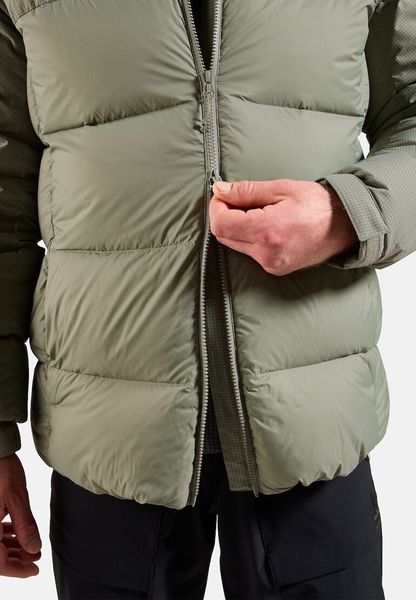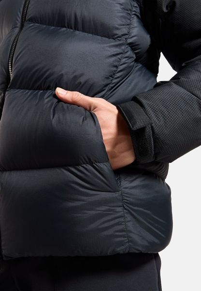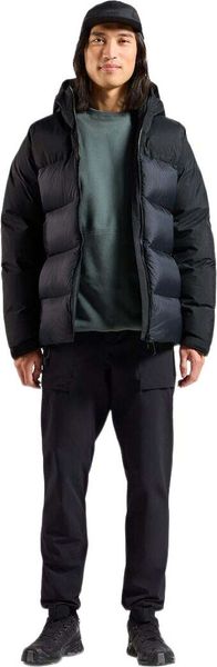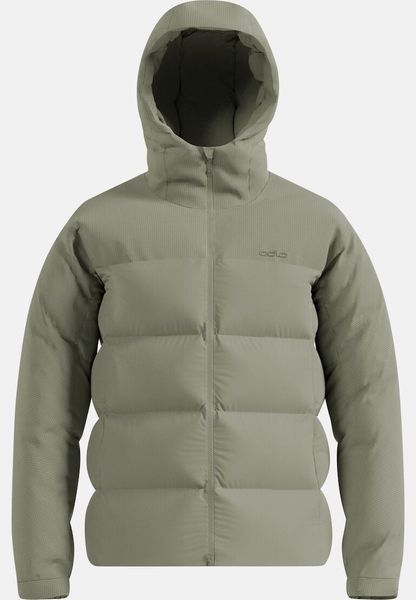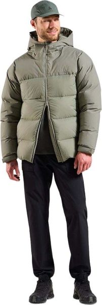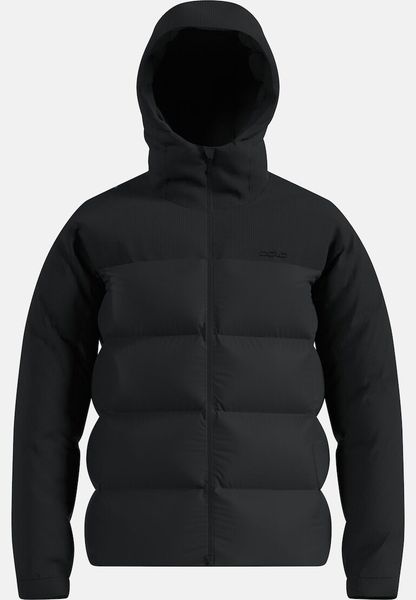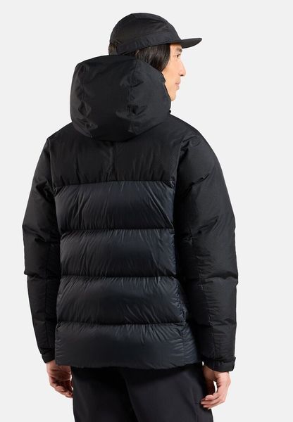 "The Down Hooded Jacket from Odlo is the ideal companion for men who love hiking and don't want to compromise on comfort and protection. This jacket combines functionalityu00e4t and style in a lightweight, waterproof designu00e4. Filled with traceable down from Allied Feather, it provides natural thermal insulation and reliable protection from the cold. The special chamber construction ensures that the heat is optimally stored, while the ripstop inserts provide additional protection against wind and weather."
