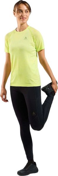 "The Essential Seamless running shirt from Odlo is the perfect choice for all active women who value comfort and functionality. Specially developed for fitness, training and running, this shirt offers an exceptionally comfortable fit thanks to its seamless construction. The innovative body zone-specific ventilation ensures that the skin can breathe optimally even during intensive training sessions, while the improved moisture regulation keeps the skin feeling dry."