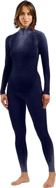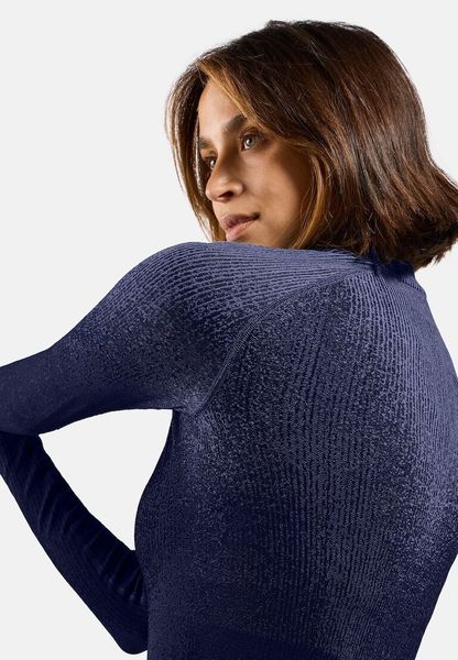 "The Performance Warm Blackcomb by Odlo is an indispensable companion for all active women who are looking for maximum comfort and functionality for both cross-country skiing and running. This long-sleeved model with a practical half-length zipper features a body-zone-specific design that offers excellent freedom of movement and improved moisture regulation. The use of 74 percent recycled polyester underlines Odlo's commitment to sustainability, developed in collaboration with the climate protection organization Protect Our Winters Switzerland."