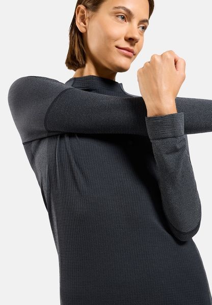 "The Seamless Performance Wool functional shirt from Odlo is the epitome of comfort and functionality for active women. With a high proportion of merino wool, it offers natural heat regulation and improved moisture management, making it the ideal choice for various sporting activities. The seamless construction not only ensures a comfortable fit, but also an outstanding fit thanks to the innovative Body-Mapping-Technology."