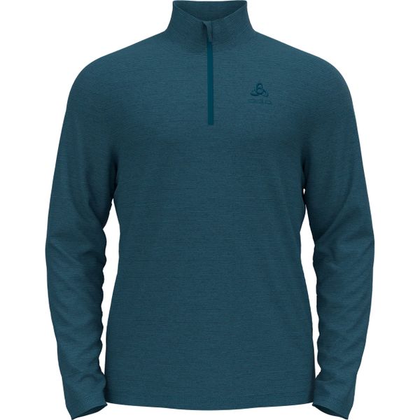 "The Odlo Roy Mid Layer with half-length zipper is the ideal choice for sporting activities in cold weather, whether skiing or hiking. Made from 100% recycled microfleece, it offers excellent thermal insulation and breathability. These properties ensure that you maintain a comfortable body climate even during intensive challenges and that your performance is not impaired"