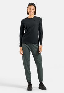 "The Zeroweight Warm running trousers 2.0 by Odlo are the ideal companion for sporty women who don't want to give up their outdoor activities even in cold temperatures. These trousers have been specially developed for speed hiking, running and fitness & training and impress with their well thought-out features. Made from recycled materials, they combine a waterproof and windproof softshell fabric on the thighs with a warm, ultra-stretchy fabric on the lower legs and back to ensure optimum protection and freedom of movement."