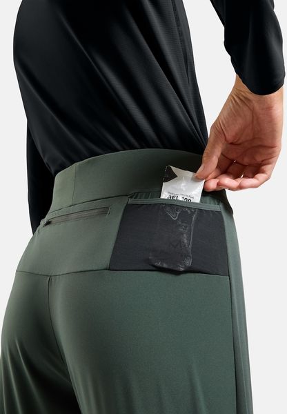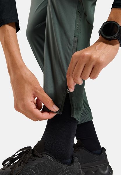 "Practical details such as the laser-cut ventilation zones ensure pleasant temperature regulation, while the zippers at the leg ends make it easier to put on and take off. The adjustable waistband with drawstring allows for an individual fit and the reflective details increase visibility in low light conditions. The trousers also offer plenty of storage space: a zippered rear pocket and two trail running-inspired meshpockets provide space for keys and other small items"