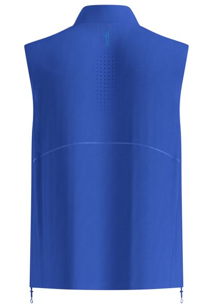 "This versatile running vest from Odlo is the perfect companion for inclement weather during the transition period. Made from 100% recycled miniripstop fabric, the gilet offers reliable protection from the wind and is also water-repellent thanks to a C0impreu00e4gnation. The gilet has a loose cut to ensure maximum freedom of movement when running. A special highlight is the chest pocket with zipper, ideal for safely storing keys and bank cards"