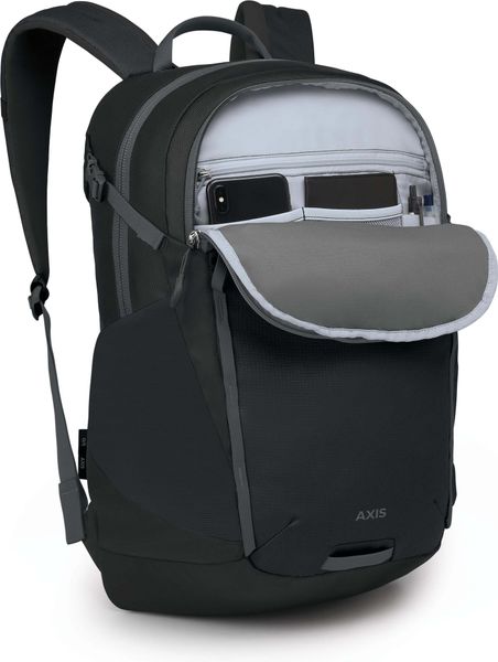 "The Axis 24 from Osprey is the perfect companion for everyday urban life and working life. With a volume of 24 liters, this backpack offers enough space for all your daily needs and impresses with its well thought-out organization. The main compartment is specially designed for students and professionals, as it contains a laptop compartment that securely stores most 16inch laptops. Tablets and document sleeves also find their place without any problems."