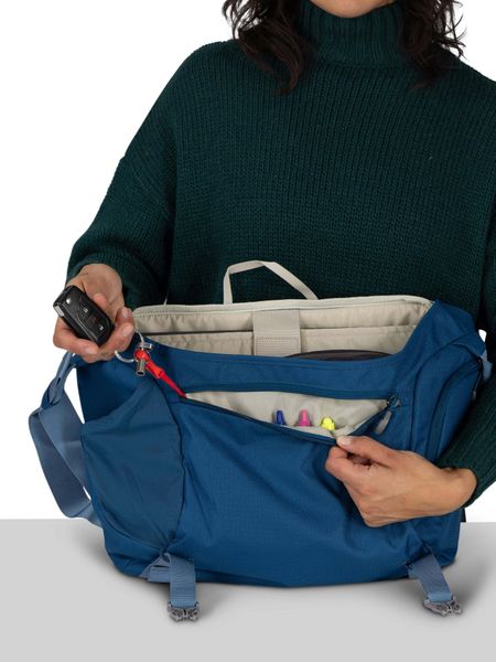 "The Daylite Messenger bag from Osprey is the ideal companion for anyone who values functionalityu00e4t and styleu00e4t. Whether for everyday use, leisure, hiking or travelingu2013 this versatile messenger bag offers enough space for all your essentialsu2013 with its well thought-out design and a capacity of 12 liters. The padded laptop compartment protects devices up to 14 inches, while the numerous organizational compartments ensure that you always have an overview."