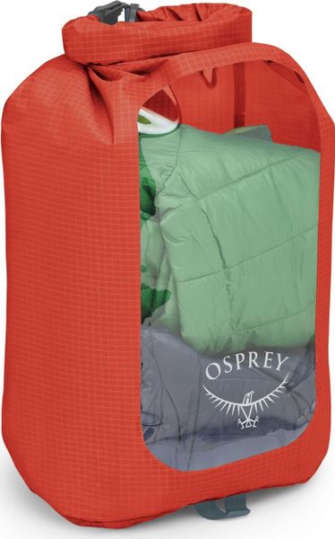 "The Dry Sack 12 W/Window from Osprey is the ideal solution for keeping your equipment dry and organized. With a volume of 12 liters, this waterproof pack sack offers enough space for all your essentials. The robust nylon material and waterproof coating on the fabric and seams guarantee protection against moisture, while the roll-top closure prevents water from getting in. Thanks to the transparent window, you can quickly and easily see what's inside at any time without having to open the bag."