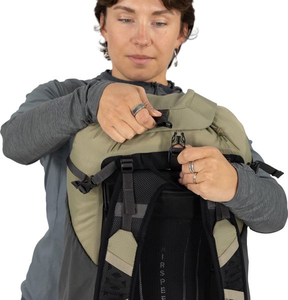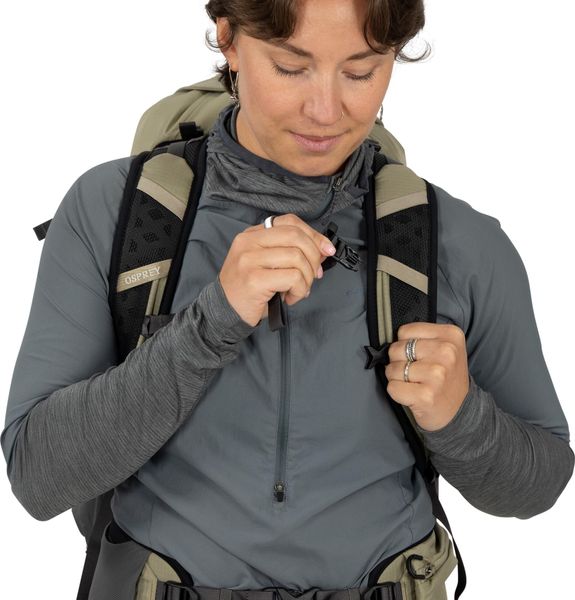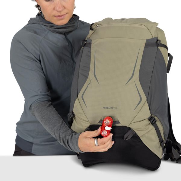 "The Hikelite 32 from Osprey is the ideal companion for anyone who enjoys hiking, whether it's relaxed walks or challenging day adventures. With its generous volume of 32 liters, this hiking backpack offers enough space for everything you need for your tour. The toploader design allows easy access to your equipment, while the flat closure flap provides additional security."