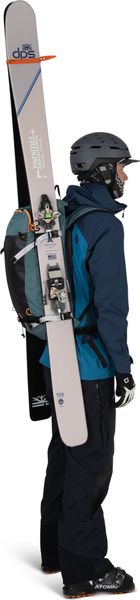 "The Osprey Soelden 25 is the ideal companion for anyone who values performance and functionality when skiing, snowboarding or freeskiing. With a volume of 25 liters, this unisex backpack offers enough space for your equipment and ensures optimum weight distribution thanks to its lightweight backcountry design. The waterproof main compartment is conveniently accessed via the back panel, while integrated holders for GPS or radio devices on the shoulder strap provide additional safety."