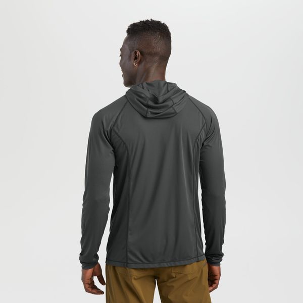 "The Echo Hoodie from Outdoor Research is the ideal choice for those who value comfort and functionality when hiking or mountaineering. Made from stretchy and breathable material that is bluesignu00ae-certified, this hoodie not only offers maximum comfort, but also UPF 15 sun protection. Thanks to its ultra-lightweight and odor-resistant properties, it is perfect as a base layer for all four seasons. The 3panel hood also protects against wind and weather, while the flat-seam construction and raglan sleeves ensure optimum freedom of movement."