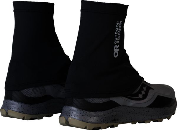 "Lightweight, breathable gaiter for outdoor adventures with a secure fit and reflective logo."