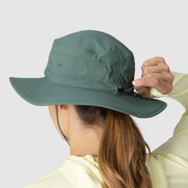 "Thanks to the breathable and quick-drying material with UPF 40+ sun protection, the Solar Roller Sun Hat offers comprehensive 360u00b0 protection for the face, eyes and neck. The one-handed drawstring adjustment and detachable chin cord guarantee a customized fit and secure hold, even in windy conditions. Threaded eyelets also provide additional ventilation and comfort."