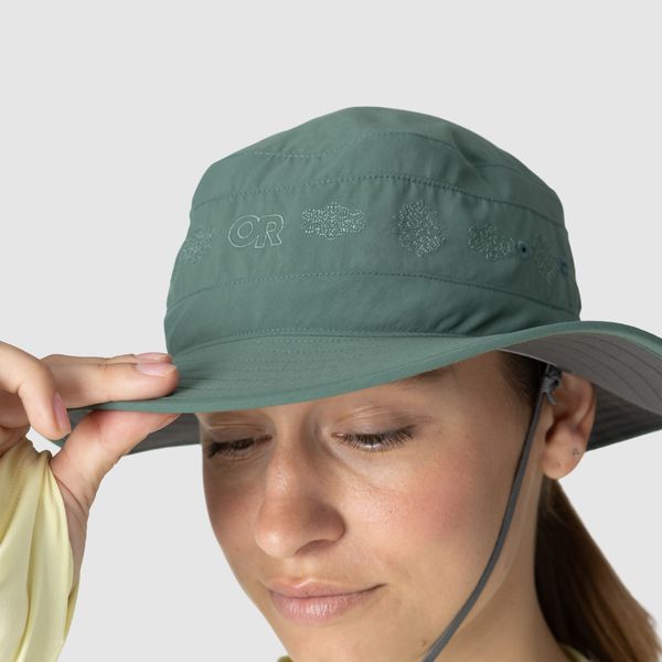 "The Women's Solar Roller Sun Hat from Outdoor Research is the ideal companion for sunny days outdoors, whether hiking or traveling. With a generous 3-inchbrim width, this hat offers optimal protection from the sun, while the dark fabric under the brim reduces annoying glare and is easy on the eyes. The floating, foam-reinforced brim not only ensures stability, but also allows the hat to float in water if it ever falls into the water."