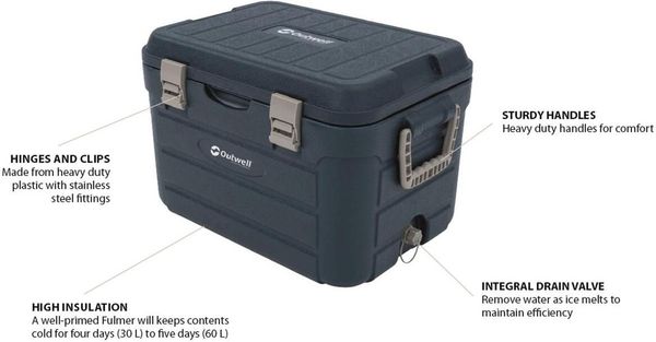 "Thanks to its generous inner dimensions of 43.6 x 30.1 x 25.5 cm, the cool box offers enough space for your camping utensils. The unisexdesign makes it the perfect choice for all genders who love adventures in the great outdoors. The Outwell Fulmar 30L combines functionalityu00e4t and reliabilityu00e4ss and is a must-have for every camping enthusiast."
